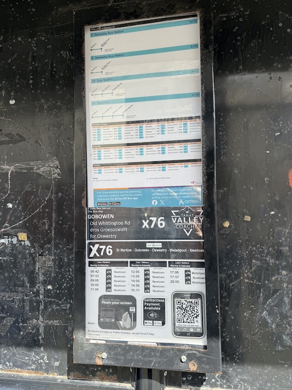 Rant over but finally to add, full marks to those bus companies obviously doing their bit despite this couldn’t care less attitude from Powys County Council. For example, Tanat Valley Coaches had posted X76 timetables at many bus stops along its route…