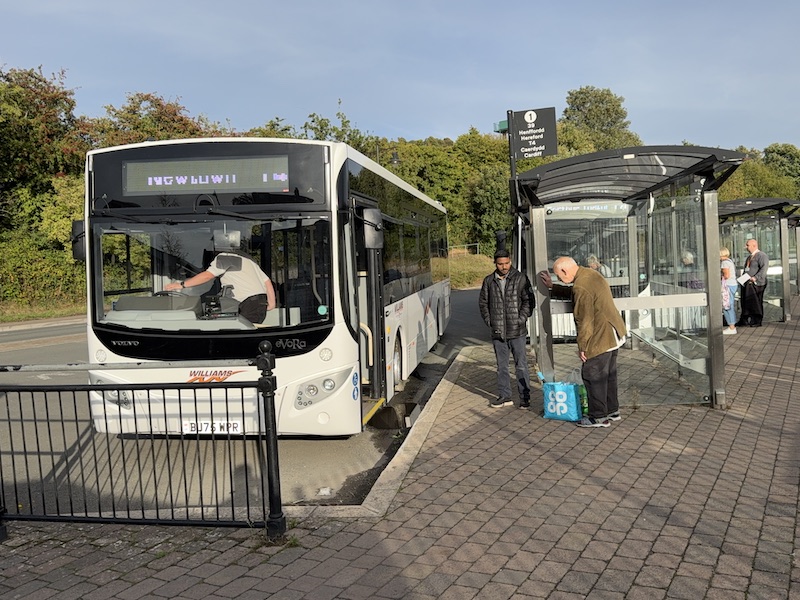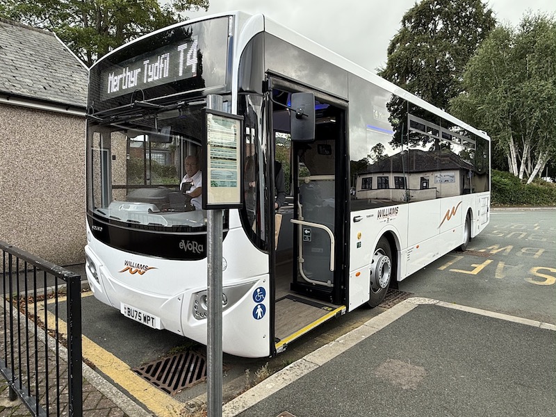 As you can see it was one of two brand new Volvo eVoRas in the white livery of Williams Travel who, with Celtic Travel, have taken the route over from Stagecoach. Confusingly this wasn’t in TrawsCymru branding which I assume is to do with the temporary arrangements before the new TfW vehicles arrive, although might also reflect the short notice operators were given to take on these changed routes.