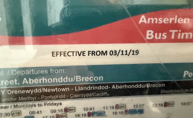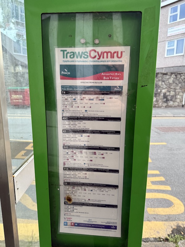 Those based in offices (or even at home these days) should get out more and see for themselves the hurdles placed in the way of passengers trying to actually use bus services and find out information. I wish authorities spending a fortune on consultants drawing up extensive network plans and consultation documents and coming up with catchy buzzwords like “building a sustainable Powys” would give as much attention to actually ensuring information is out there across all channels (online, print and on public display) in advance of changes and certainly from Day 1. It can be done; I speak from experience.