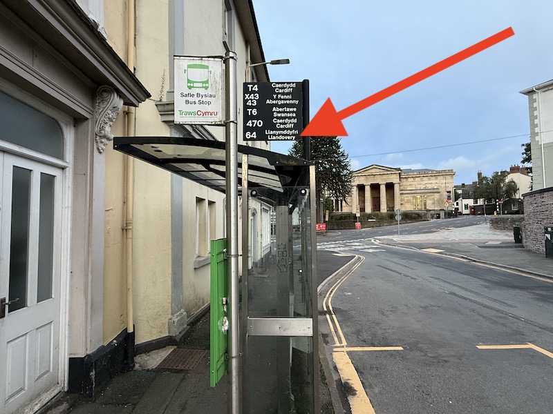 One final one (of many observed), I’m told route 64 to Llandovery was withdrawn more than 10 years ago, but it lives on on this bus stop flag in Brecon.