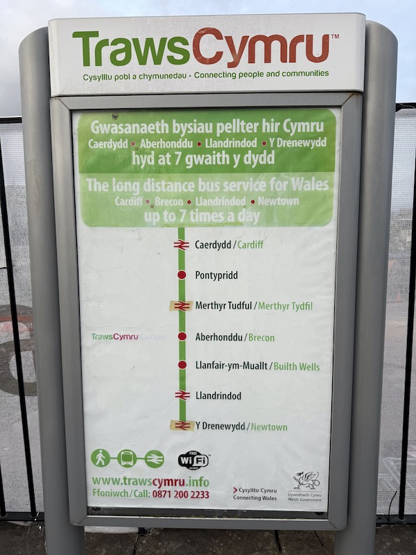 From Newtown I caught the still numbered T4, and still branded TrawsCymru, but now only as far as Merthy Tydfil rather than Cardiff, although I was alighting in Brecon.