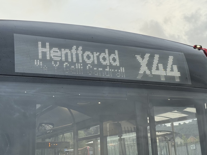 And as the X44 is a bus rather than a train it would have arrived “at” Hereford, not “into”!