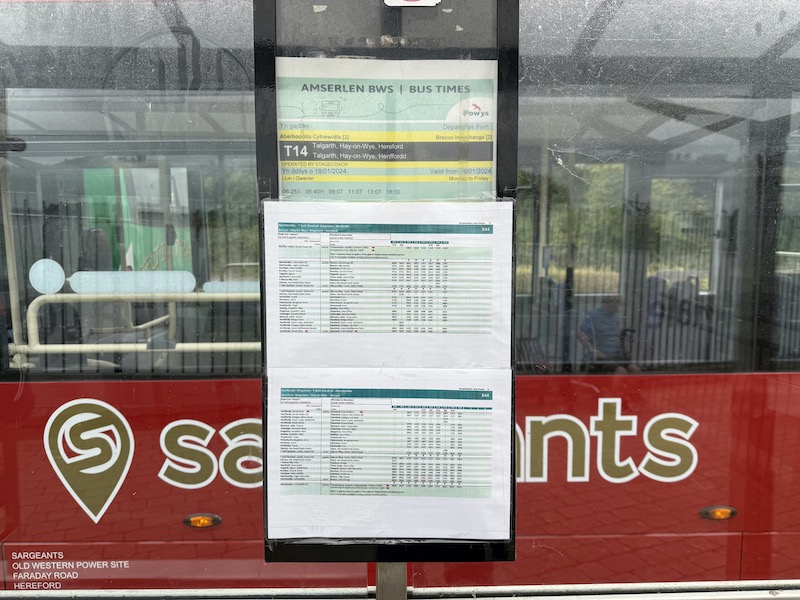 Not only are there no correct timetables displayed but on the new X44 (replacing the T14) there’s no information on Sargeants app because Powys County Council hadn’t sent them the software!