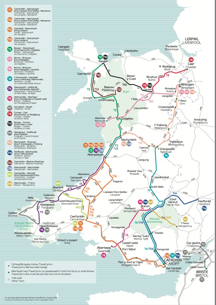 Here’s the TrawsCymru network map as applied before last week’s changes…