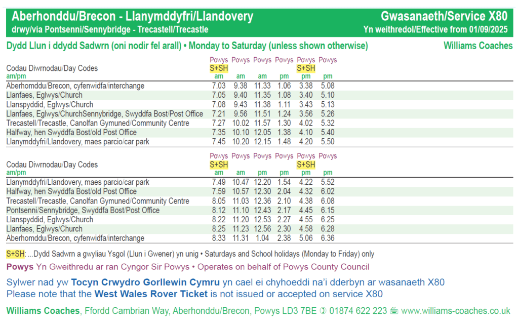 …Williams Coaches had posted route X80 timetables between Brecon and Llandovery…