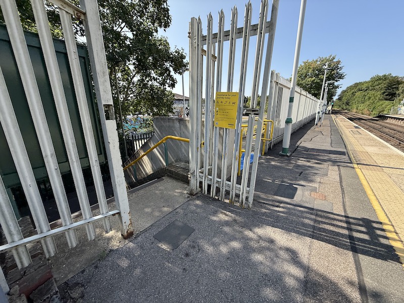 with a footbridge connecting the two platforms, albiet in East’s case without a lift. However, Ewell East’s platform 2 is accessible by a long footpath…