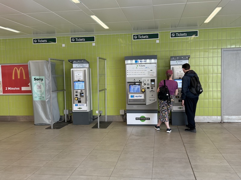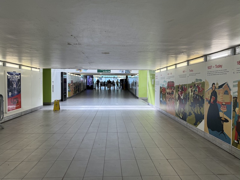 Hidden as it is beneath flats, a budget hotel and a car park and sitting alongside a Tesco Express and Costa. Luckily there’s a prominent sign on a vivid green background to confirm this is indeed the entrance and a rather large ticket hall awaits as you enter.