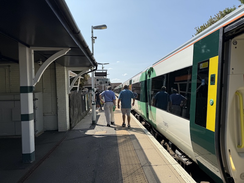 As befits its busyness, Epsom sees four Southern trains each hour – a half hourly terminator to and from London Bridge via Sutton and West Croydon and a half hourly departure originating in Victoria and running via Mitcham Junction and Sutton and continuing south via Leatherhead to Dorking, with one of those continuing further south each hour to Horsham.