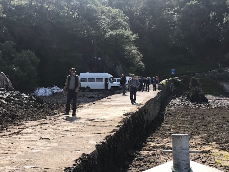When I made the journey I arrived at the jetty to find no ferry in sight and the tide out. The ferryman was spending the down time fishing in the Kyle waiting for the water to be deep enough to restart the ferry crossings.