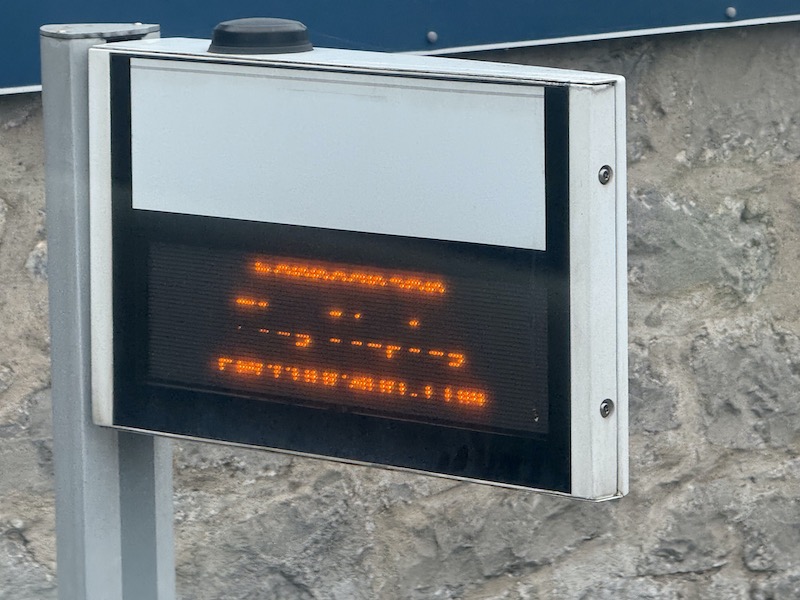 I got quite excited when approaching the bus stop photographed above to see it showing an electronic display only to get up close and see it simply stated “Flag Display”. The one below helpfully displayed a phone number passengers could ring, albeit a premium rate number.