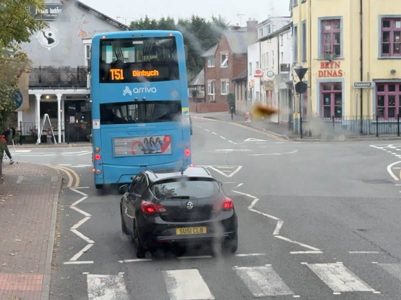 Back through Denbigh’s Vale Street at 10:50 we met a queue of traffic waiting for the bus in front, which was now heading back to Rhyl, to load up with passengers…