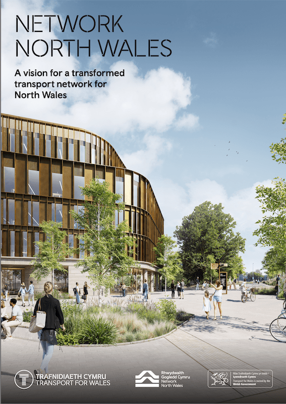Is there any significance in the fact that the illustration on the document entitled “Network North Wales – A vision for a transformed transport network for North Wales” shows only two modes of transport in use – feet and bicycles?