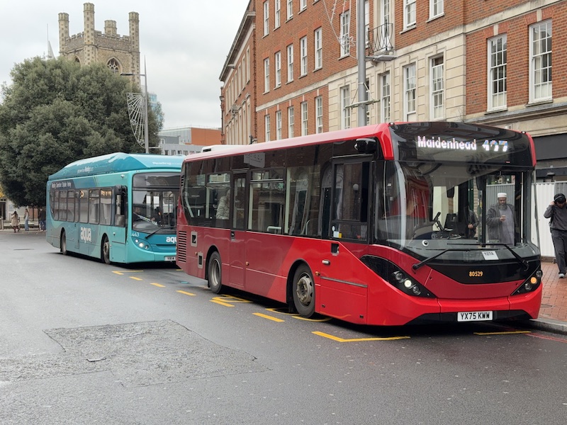 It also means there’s a lot of purple buses running around in Maidenhead between the two operators, and then of course the occasional newly branded purple liveried First Bus appears too.