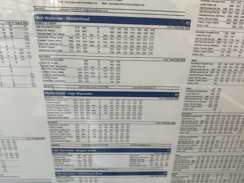 But, impressively in High Wycombe bus station, Buckinghamshire’s comprehensive timetable displays had been updated…