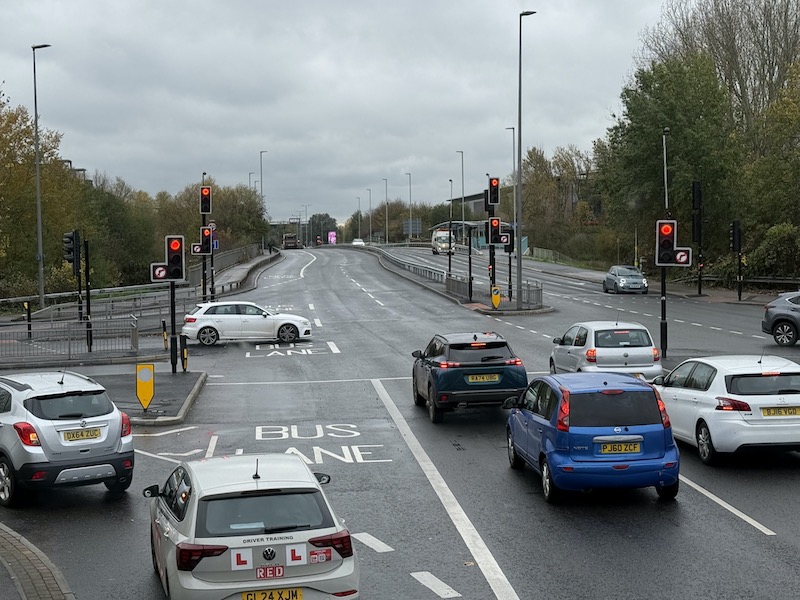 I prefer Bus Lanes to have at least a bus every 5 mins, ideally 3. But this seems a good way of creating something usable and a priority for bus users through junctions – which are the biggest frustration being on a bus stuck in a queue going nowhere. The route through the roundabout is interesting and perhaps could be adopted where practical and traffic lights work in conjunction with other entry arms to such roundabouts elsewhere.