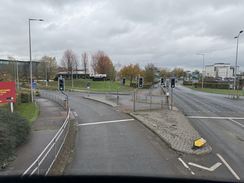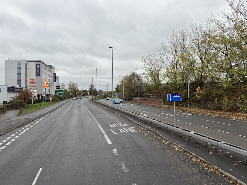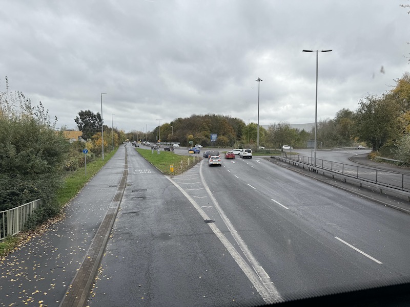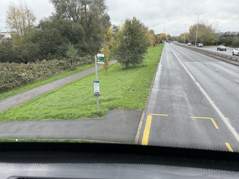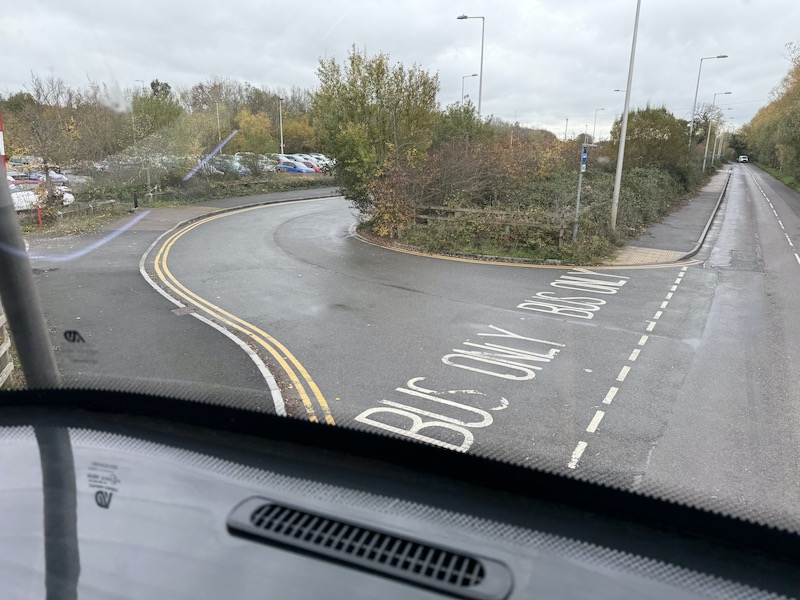 … before turning off to the west to access the Park and Ride site, which doesn’t take long to reach, and use the bus only access entrance.