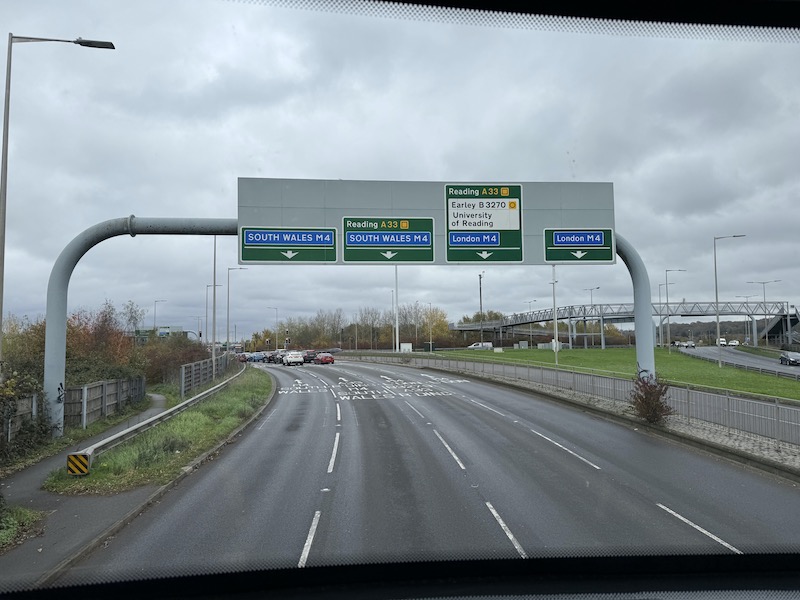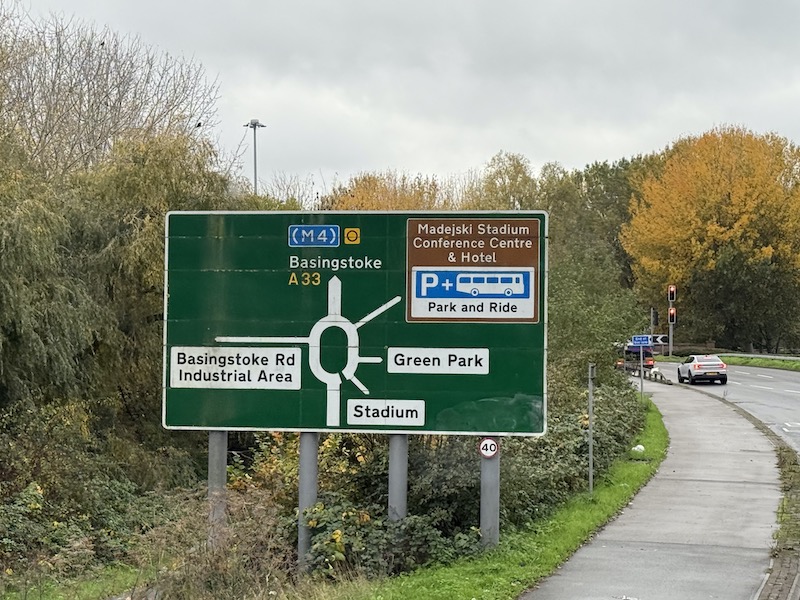… then as we approach the roundabout for Green Park and the Madejski Stadium (which confusingly advertises a Park and Ride site which is only open on match days)…