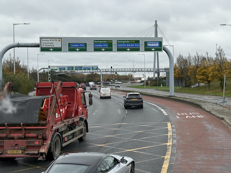 Leaving the bus stop close to Reading station and negotiating all the twists and turns around the town centre’s one-way streets it doesn’t take long to reach the first section of bus lane on the slip road as traffic joins the start of the A33…