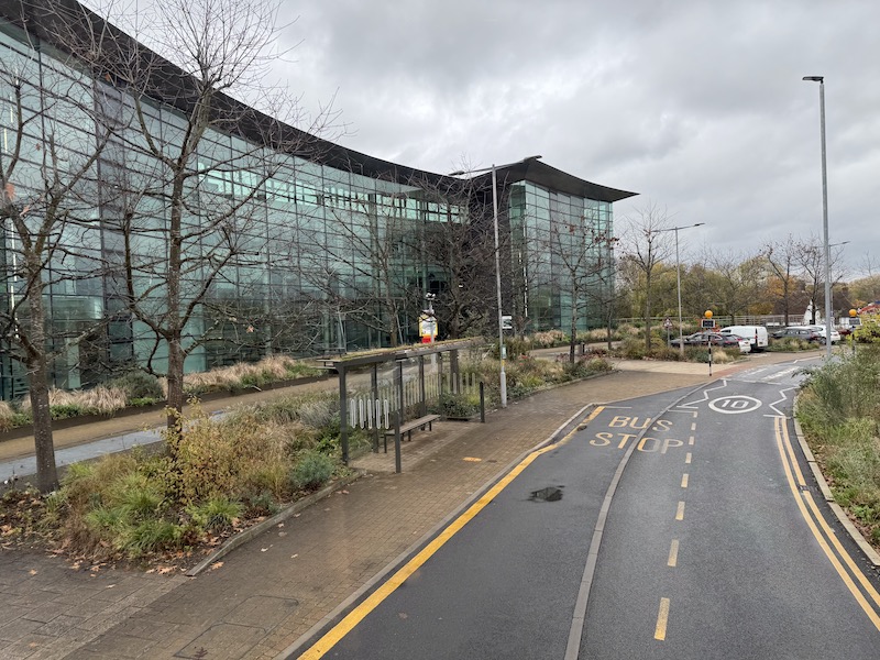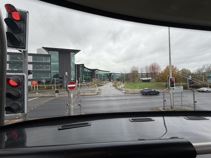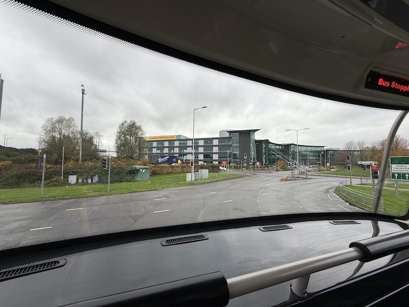 … where there’s a newly installed bus stop. Robert Williams tells me “Campus Reading International opened in late 2000. It was originally HQ for MCI Worldcom, later Verizon, and became known as Reading International Business Park (RIBP) before rebranding to Campus Reading International in 2021.” I queried whether it was the correct name with the words in that order, as it doesn’t sound right to me, but Robert explained “Campus Reading International is the correct arrangement but is still quite a confusing name when it is nothing to do with Reading University! Apparently, it is inspired by the university campus-like facilities and international businesses that are based there. They have been having a bit of a revamp recently to try and increase lettings.”