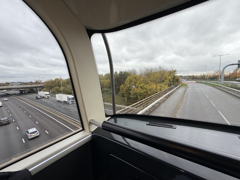 … was, instead of the bus continuing south over the M4, it turned off to the right to cross the northbound carriageway…