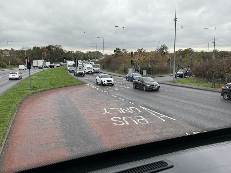 Heading back into Reading, as already explained, northbound buses don’t use the bus lane across the centre of the M4 junction…
