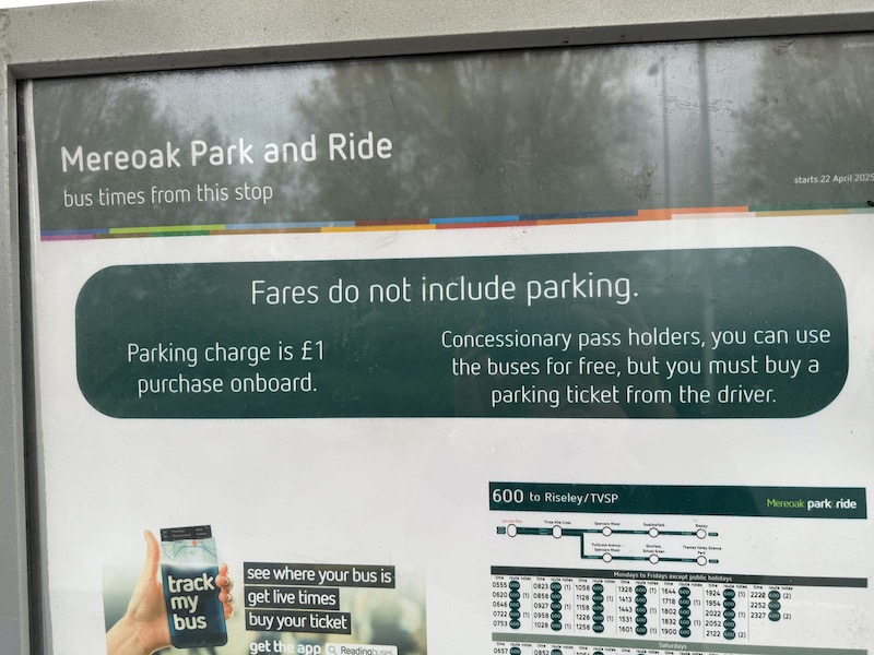 As you can see below, in addition to the bus fare a £1 parking charge is made which also applies to concessionary pass holders.