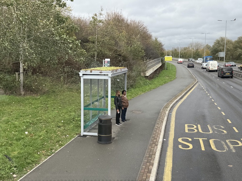 …where one of the new bus shelters paid for by the scheme has been installed…
