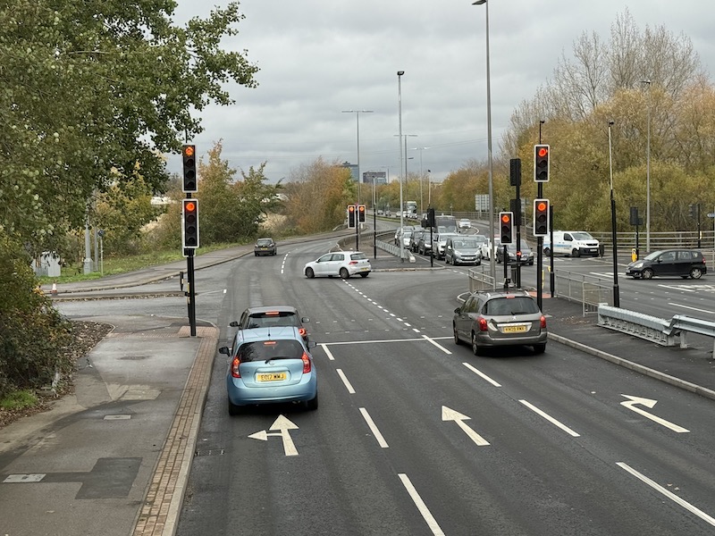 ….“whilst the outbound-heavy provision on the A33 might at first feel a bit odd, it is based around reaching key junctions more easily, and the junctions where traffic from the opposite direction has to cross. There can be significant queues outbound because of the way the traffic from the various business parks filters on during the afternoon peak, or after football matches, where in the morning the traffic peels off without too much disruption. There also just happens to be more junctions on the outbound side than inbound because of the flood plain, and the M4 junction is pretty busy in both directions due to the London commute.”