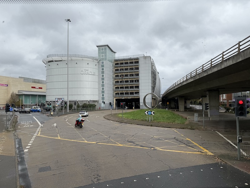 … and in a fit of nostalgia, passes the site of the original Reading Transport Mill Road bus garage which I remember so well from my time in Reading just over 50 years ago and is now the Oracle Centre and car park.