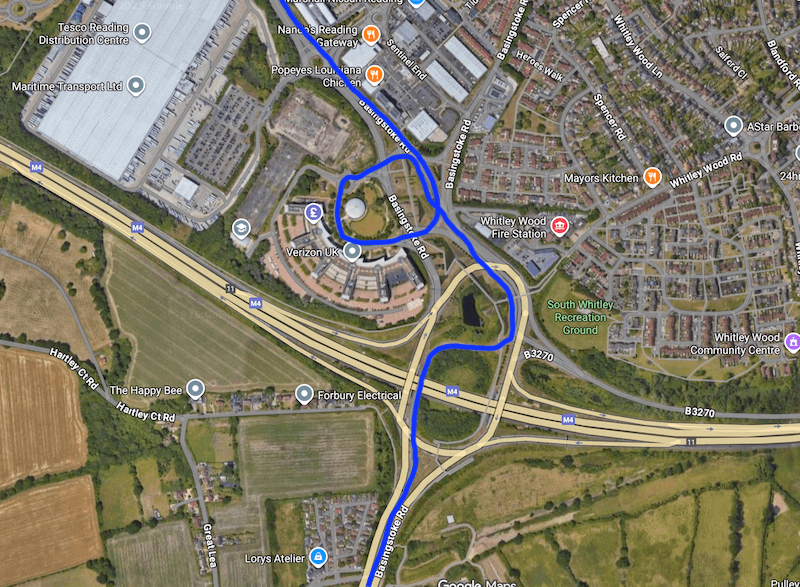 … over to Aldi and the southbound carriageway and back towards the M4 junction again.