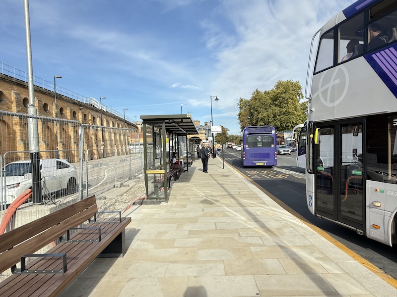 As you say, the stops are much further from the station, and the shelters not worthy of the name. The traffic calming will be negated when Network Rail/LNER’s new multi storey car park opens in 2029 with its doubling of present capacity, but using the same access road at the south end of the station. The station will end up with just 9 bus stops, leaving no resilience for growth or for any extended, Swiss styled, timetabled pauses to facilitate connectivity.