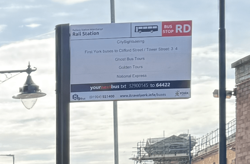 Weary travellers need to be encouraged by simply: out the front door and there!!! : the buses, to one’s home or hotel in the case of many visitors to York
