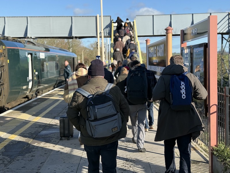 Castle Cary railway station has long been famous as the bridgehead for the annual Glastonbury Festival. Thousands of festival goers travel by GWR and SWR trains to and from this small Somerset station each June before completing their journey on a fleet of special shuttle buses laid on to move the huge crowds to Worthy Farm, near Pilton, a village six miles east of Glastonbury.