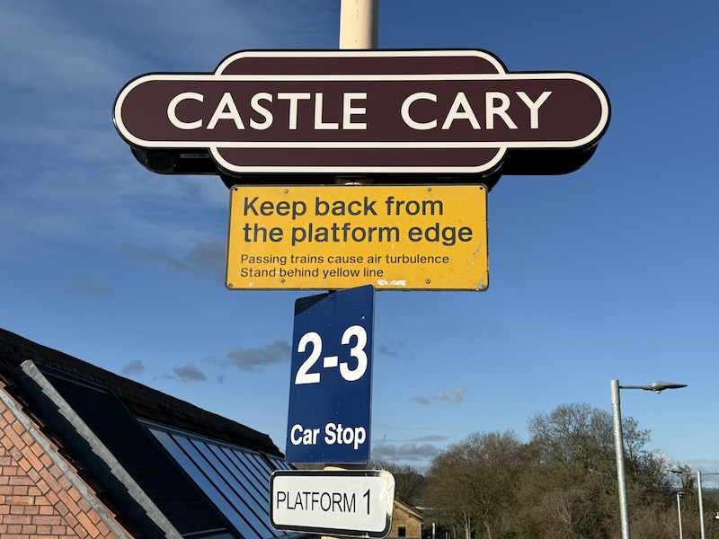 Timings could be arranged to connect with GWR trains which will fit nicely in with its policy of promoting the TrainLink brand at a number of stations across its network (eg Okehampton and Totnes). Indeed, Castle Cary station has recently benefited from a makeover and now has some wonderful heritage style signs…