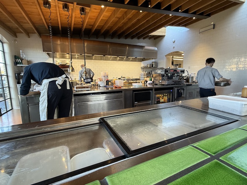 All the tables were taken last Thursday lunch time when I visited so I sat at ‘the bar’ to have my coffee which overlooked the kitchen making for a fascinating watch as I waited for the train back to London.