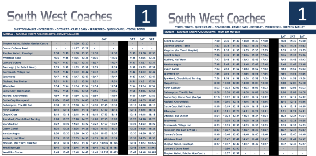 But, it’s an excellent initiative and great to see a community group actively getting involved to promote, organise and fund a new bus service. However, if an additional bus were to be funded it might be better deployed doubling the current two-hourly frequency on the section of route 1 between Castle Cary and Street to hourly and extend the route the four miles on to Glastonbury.