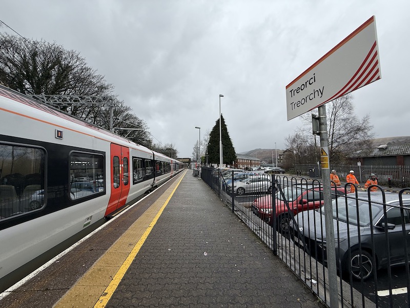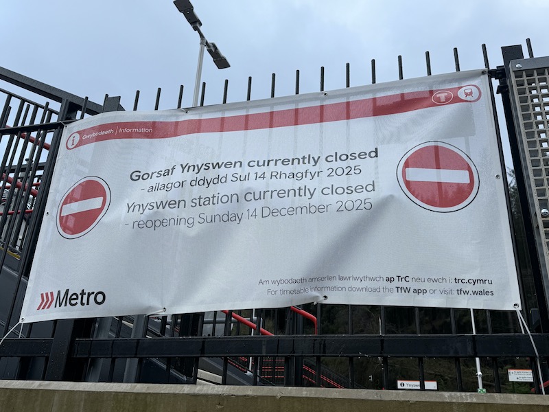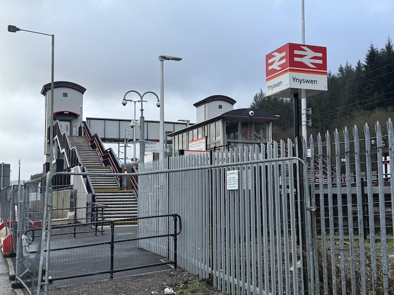 The Treherbert line north of Pontypridd closed back in April 2023 as part of upgrade work to electrify the line. Unfortunately when it reopened 10 months later, in February 2024, not all the work had been completed, in particular building a new second platform along with doubling the track and the installation of a footbridge and lifts at Ynyswen, the penultimate station on the line between Treorchy and the terminus at Treherbert. Ynyswen station remained closed as trains returned to the line from Cardiff Central through to Treherbert.