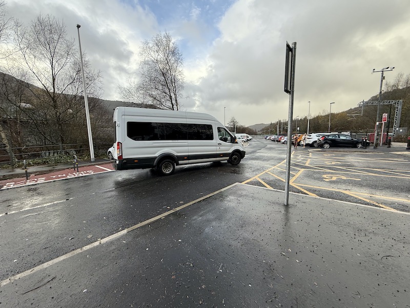 Then at 12:10, to my relief, a minibus came into view and pulled into the empty disabled parking bays…