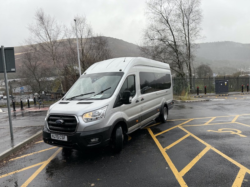 The service is being run by Porth based Thomas of Rhondda using minibuses from its mainly coach fleet used on Private Hire as well as a couple of Enviro200s used on three local bus routes in the Porth area. The Replacement Bus runs from first to last trains, seven days a week giving a half hourly timetable from 05:20 to 22:20 then hourly until 00:20 as well as hourly between 08:00 and 23:20 on Sundays making for quite an intensive commitment for the (officially) four (ticketed) passengers a day who’ve (supposedly) used it.