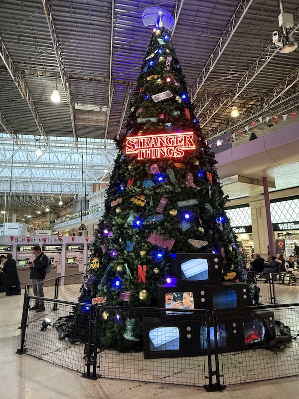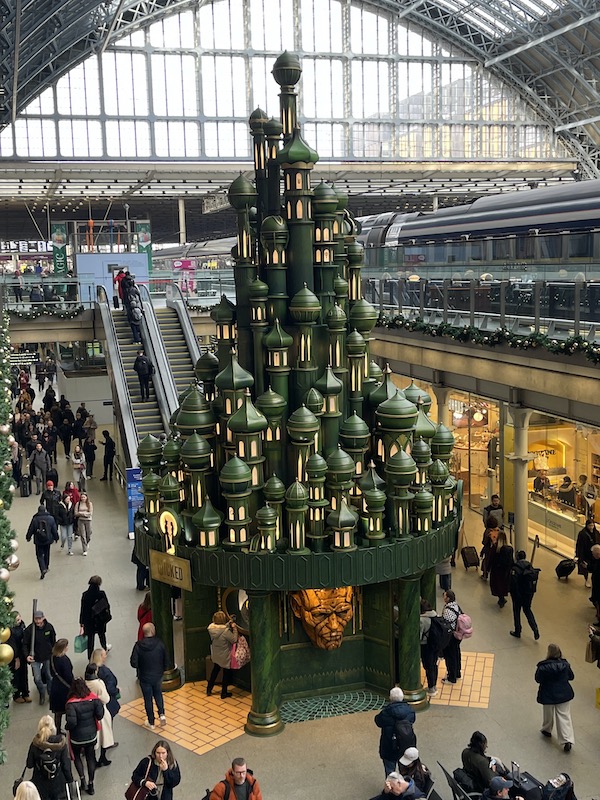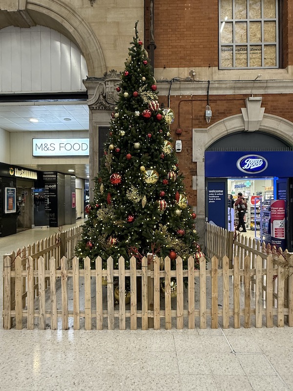 OK, I accept there is a tree in there, but why hide it among the blatant sponsorship from the Warner Brothers/JK Rowling conglomerate? If you must have some kind of non festive theme, what would have been wrong with lovely red, white and blue ‘Great British Railways is coming soon’ messaging around the tree and keep everything on corporate message. Maybe Heidi Alexander and Peter Hendy could have shown up for the lighting up ceremony.