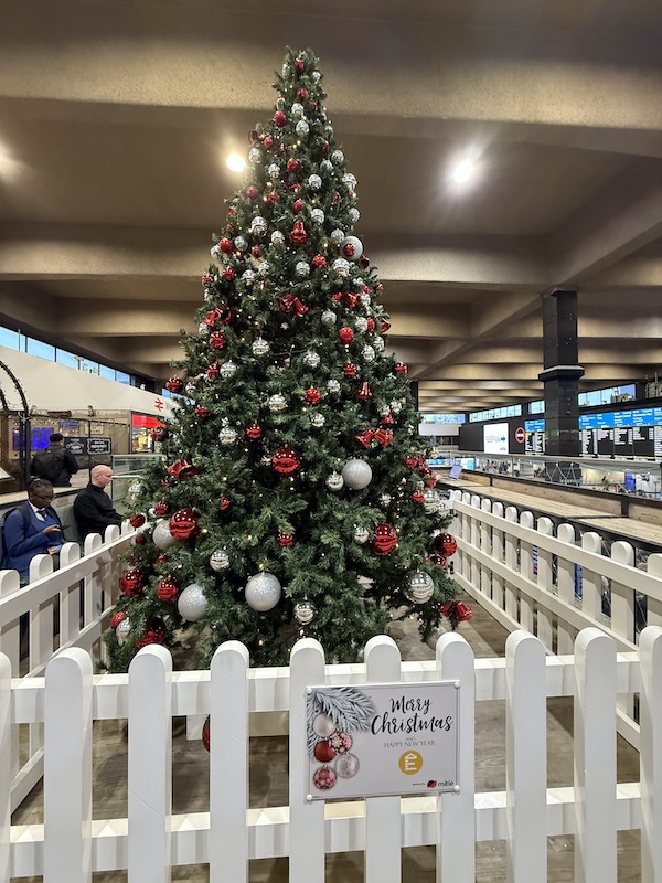 Which brings me to the Top 3 Christmas trees at London’s main line termini for 2025. And to qualify for a coveted top spot there must be no sponsorship, the tree must look like a Christmas tree and the baubles and decorations be attractive.
