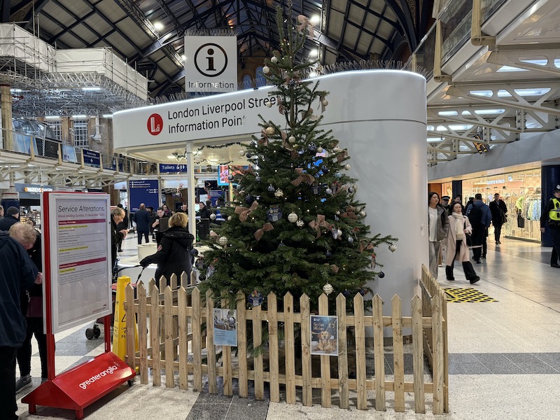 To get in the mood for next week’s festivities I’ve taken my annual wander around London’s 12 main line termini having a look at their Christmas tree displays. Readers may recall last year I awarded joint first prize to King’s Cross and Paddington for their truly splendid efforts complete with a local choir singing alongside the tree at the former and the Salvation Army playing carols at the latter. It was all very festive.