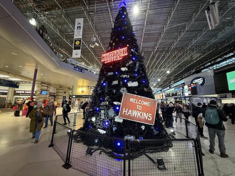 “Stranger Things” and “Welcome to Hawkins” went completely over my head, not appreciating “the hotly-awaited final season of Netflix’s smash-hit horror, sci-fi and ’80s coming-of-age drama show gets underway on Thursday, and anyone passing through one of London’s busiest train stations will know about it”. Apparently Manchester Piccadilly has succumbed to the same abomination.