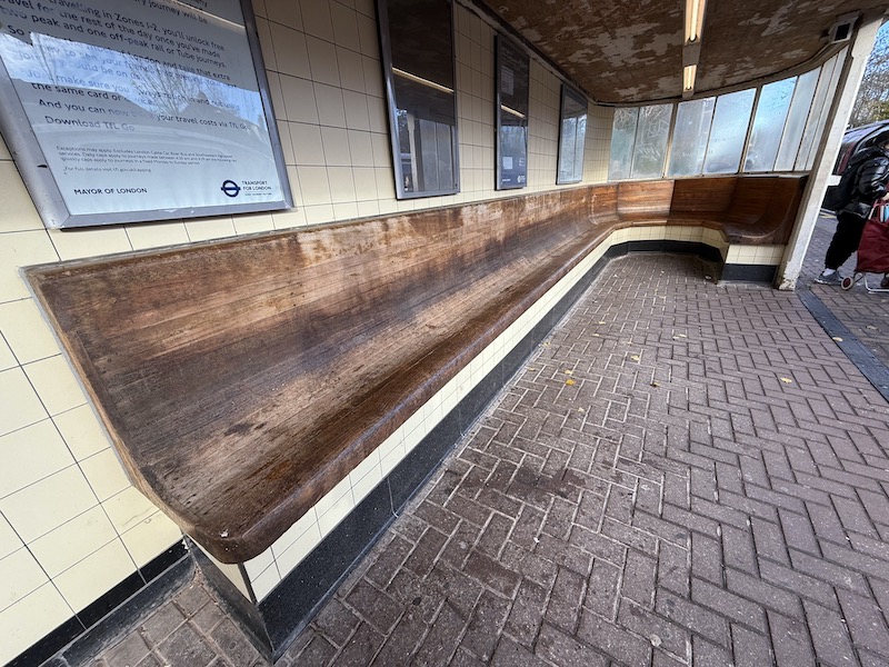 … and down on the platforms another Holden-ish touch being the waiting shelters with their rounded ends…