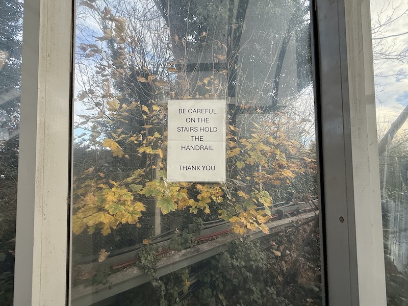 …carry a dire “Travel information” warning but only once you reach the top of the stairs…