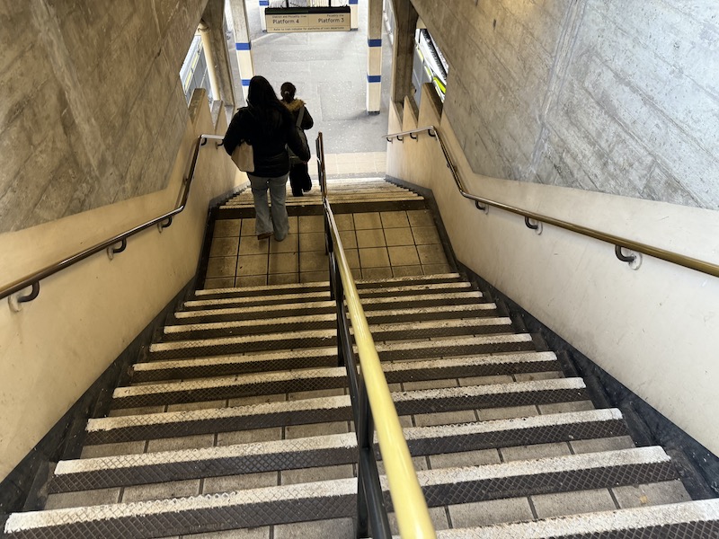 At the eastern end of the platforms there’s quite a complex and secure footbridge for staff to use to reach the facilities and offices either side of the tracks.