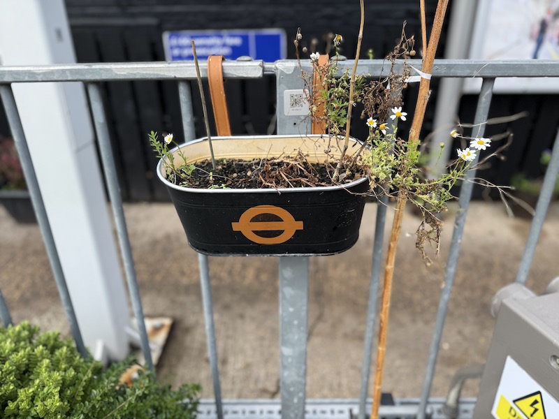 It’s a station with fairly narrow platforms but the staff have made room for some planters alongside the seats…