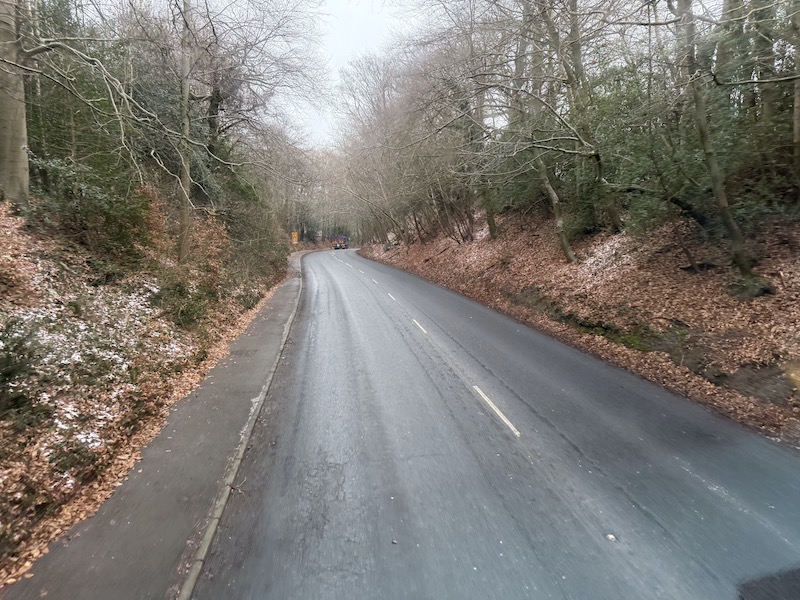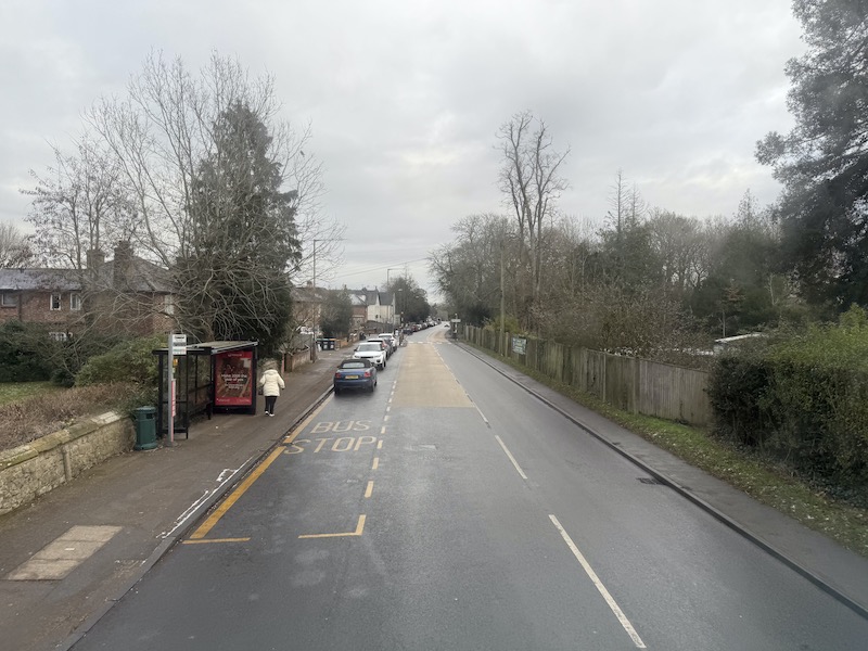 No other passengers were waiting at any of the bus stops on the journey south so it was just the three of us on board.