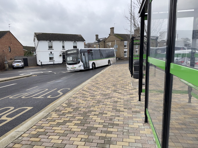 When we got to Potton the friendly driver explained we were on diversion due to a road closure through Tadlow so I hope anyone waiting there was not left stranded as there didn’t seem to be any information about the changed route (via Guilden Morden and Wendy) which thanks to some excellent driving only added a couple of minutes to the overall journey time.