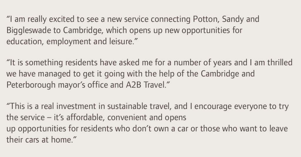 Even more encouraging was an email I received from another blog reader, Katie, who “gave it a go” on Saturday with a “full load of 31 from Potton on the first Cambridge bound departure on the A2B minibus”. As Katie observes “not bad for its second Saturday”.